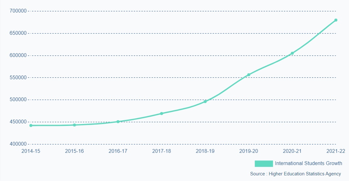 Number of international students studying in the UK